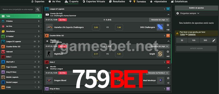 O 759Bet oferece uma grande seleção de opções de apostas em e-sports com probabilidades competitivas